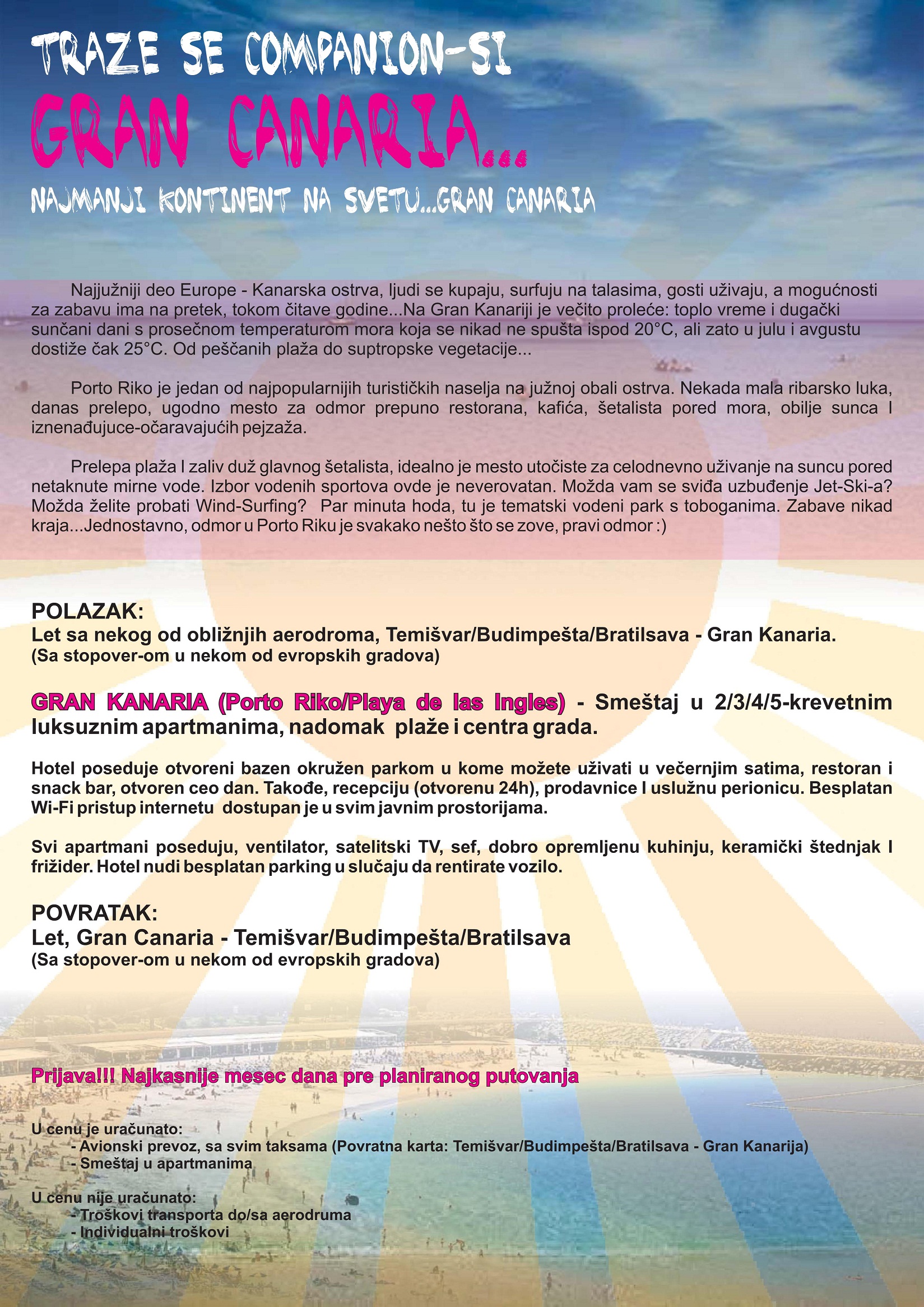 TRENUTNO NEMA AKTUELNIH PONUDA ZA PUTOVANJE NA GRAN CANARIA-u!!!