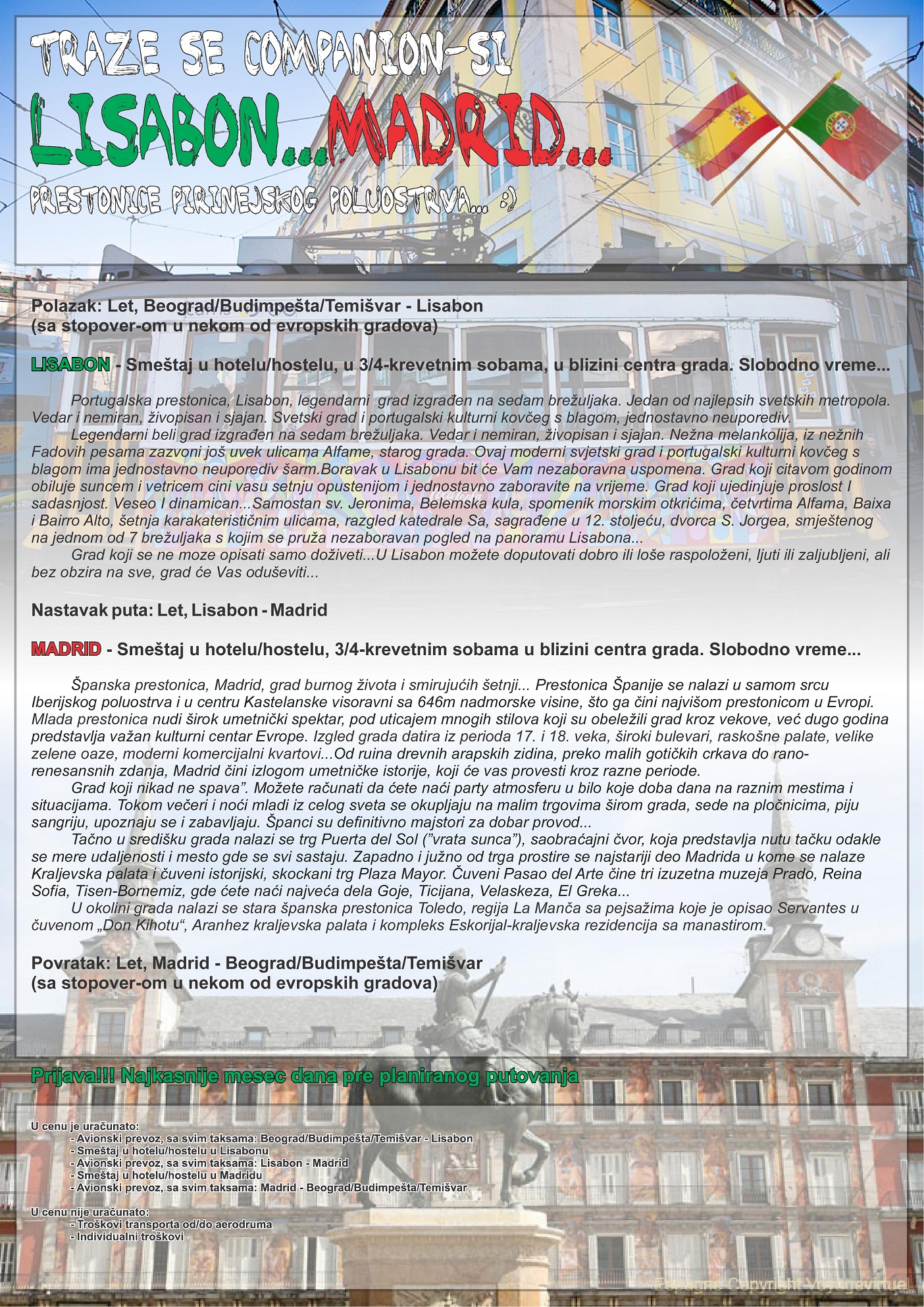 7 noćenja (3 noćenja u Lisabonu + 4 nocenja u Madridu) - Let iz Beograda