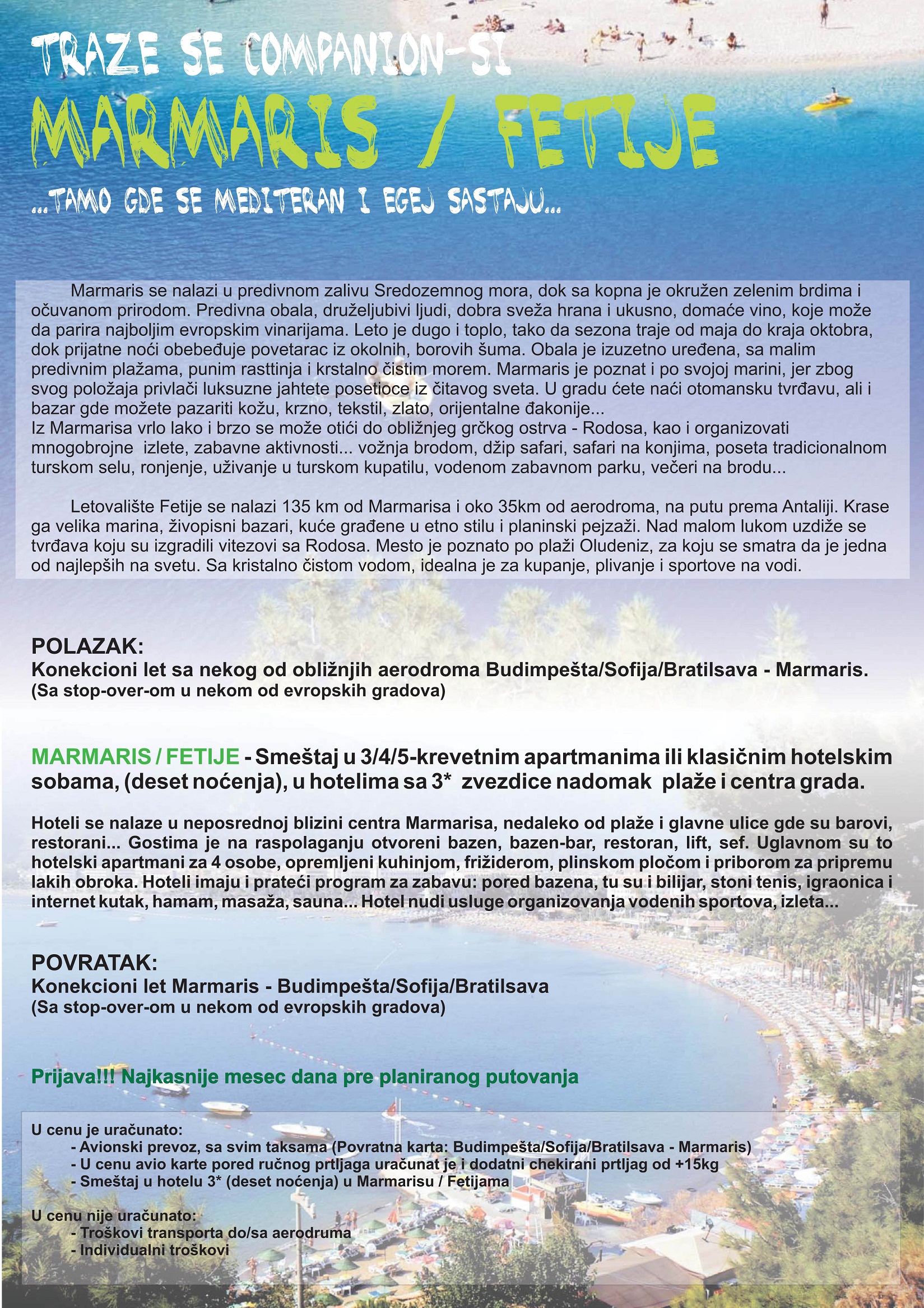 Prijava do 05.april... CENA 230e (7 noćenja) / 235e (10 noćenja)