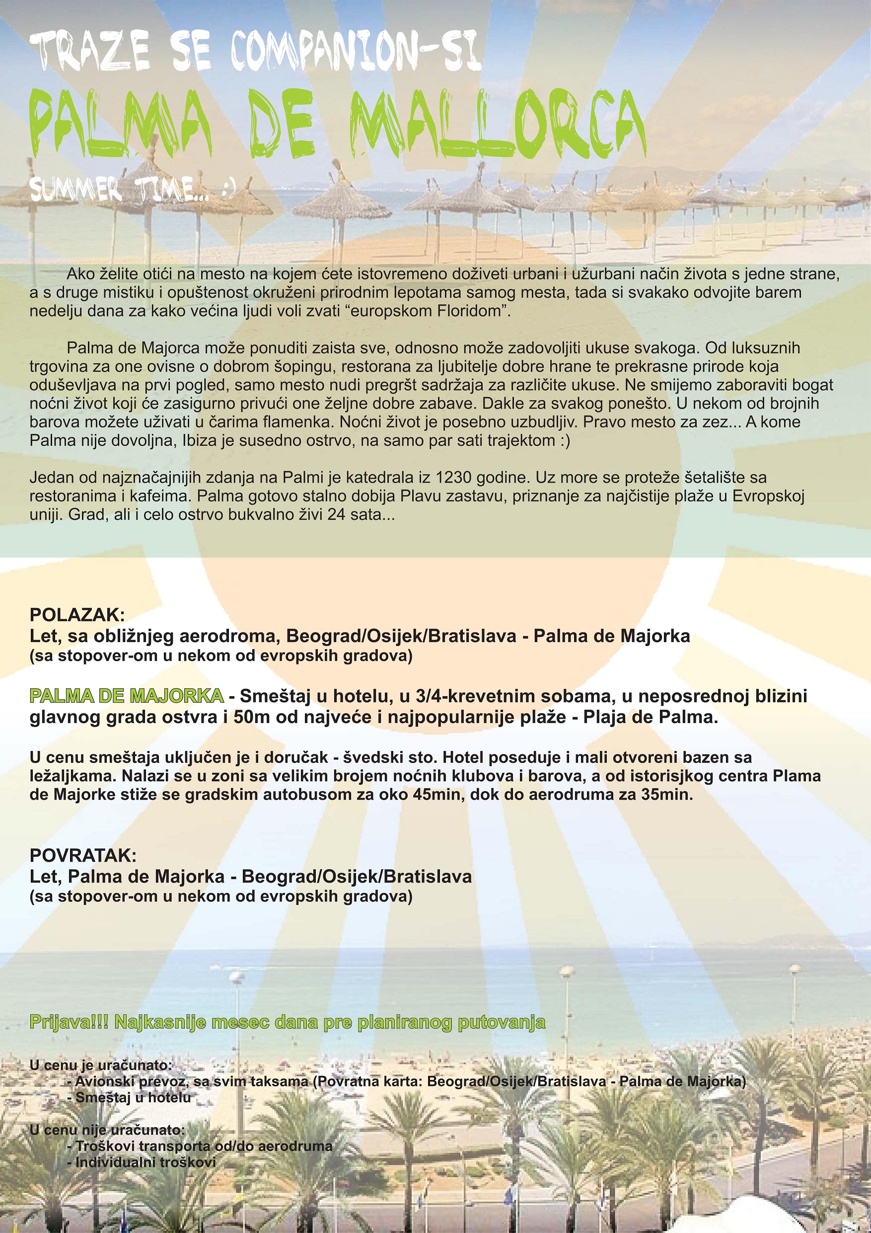 Prijava do 02.jula...CENA 290€ (smeštaj u Palmi)