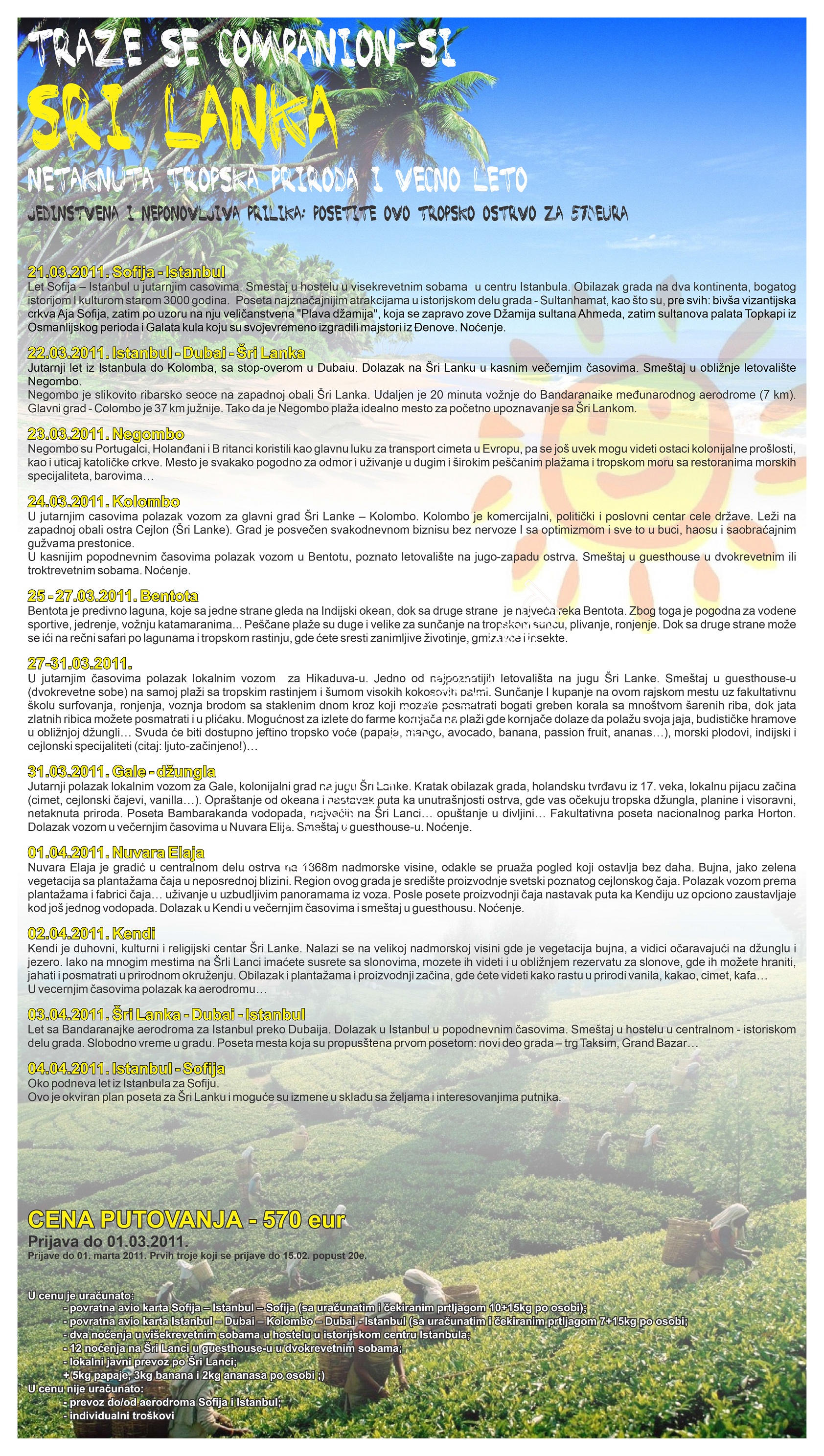 avio karte BEOGRAD - Šri Lanka - BEOGRAD sa svim taksama